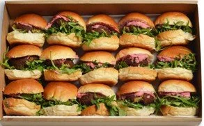 Chickpea falafel patty, slider bun, roast beetroot hummus, rocket leaves (15pcs)
