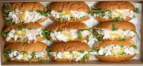 Poached free range chicken breast, mayo, preserved lemon, Dutch feta, rocket, vienna roll (18pcs)